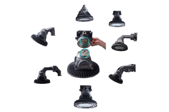 Rated for Class I, Division 1 and Class II, Class Ill hazardous locations, marine and wet locations, certificate for ATEX Zone 1 and Zone 2. Applicable for oil and gas refineries, petrochemical facilities, drilling rigs, platforms, food and beverage facilities, loading docks, tunnels, outdoor wall and stanchion mounted general area lighting, indoor/outdoor spotlighting, and where flammable vapors, gases, ignitable dusts, fibers or flying are present.